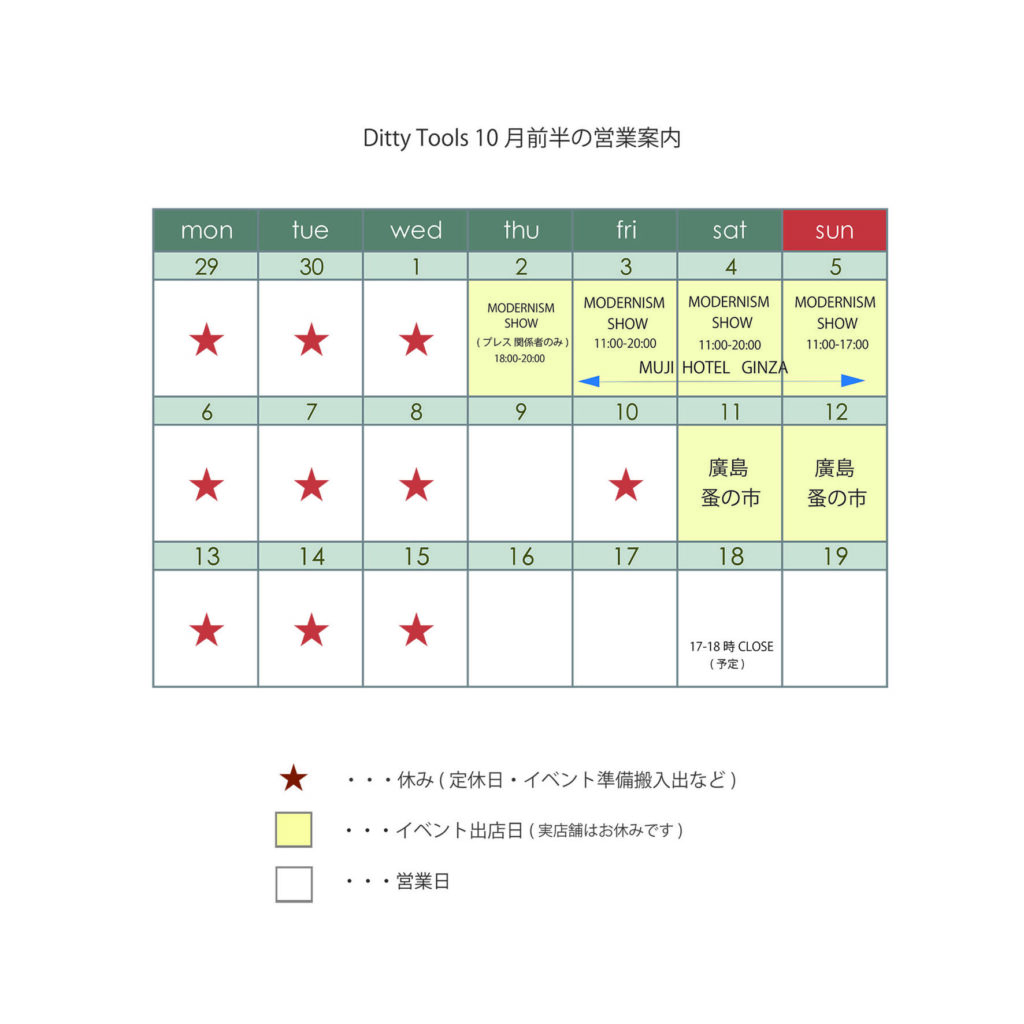 10月前半の営業案内です。